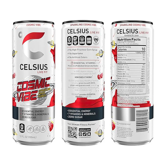 CELSIUS Sparkling Cosmic Vibe, Functional Essential Energy Drink 12 Fl Oz