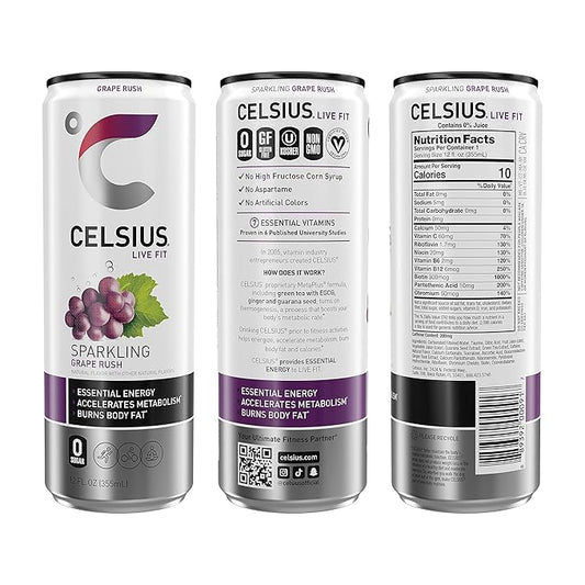 CELSIUS Sparkling Grape Rush, Functional Essential Energy Drink 12 Fl Oz
