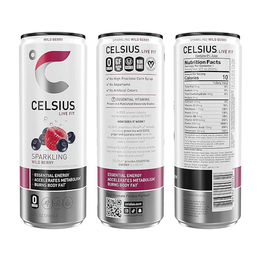 CELSIUS Essential Energy Drink 12 Fl Oz, Sparkling Wild Berry