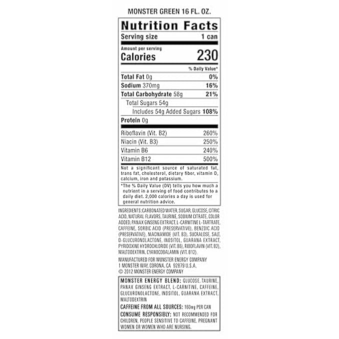 Monster Energy Drink, Green, Original, 16floz